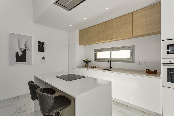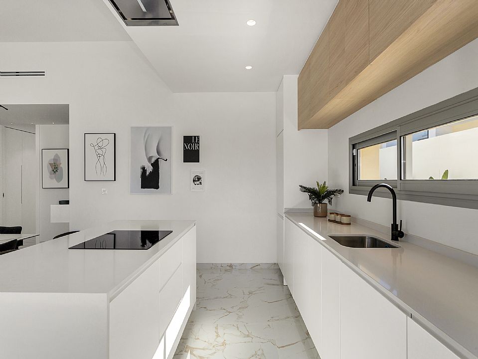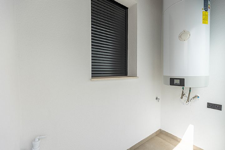 Featuring an open plan between kitchen, living and dining area, this villa is the perfect place for gatherings with friends or family. The villa offers three spacious bedrooms and two modern bathrooms, perfect for families or guests. From the living room you have direct access to the private pool, where you can enjoy the sun on the terrace. Each villa has its own parking space, ensuring the safety and proximity of your vehicles.