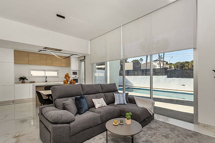 These villas are located in the popular Los Balcones area, which offers the perfect balance between tranquility and accessibility. All essential services, such as supermarkets, health centers and many restaurants, are easily accessible. Recreation areas are also nearby, making this the perfect place to enjoy the relaxing Spanish lifestyle.