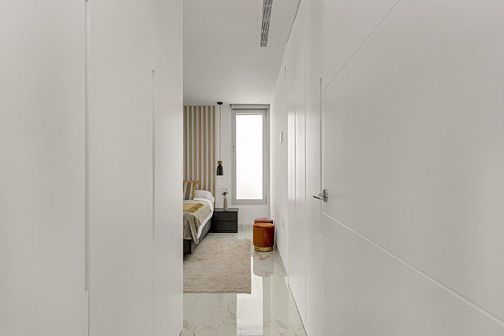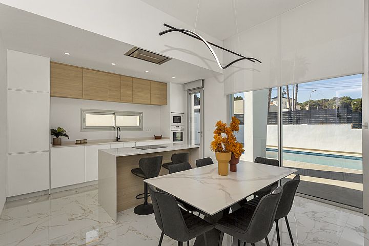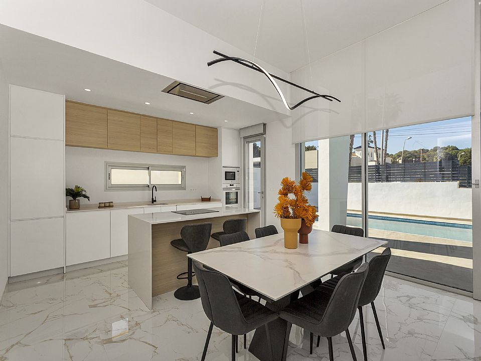 Featuring an open plan between kitchen, living and dining area, this villa is the perfect place for gatherings with friends or family. The villa offers three spacious bedrooms and two modern bathrooms, perfect for families or guests. From the living room you have direct access to the private pool, where you can enjoy the sun on the terrace. Each villa has its own parking space, ensuring the safety and proximity of your vehicles.