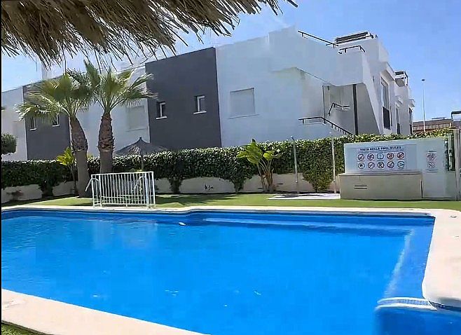 Vi kan med glädje presentera denna väldigt attraktiva lägenhet på en av Torreviejas högsta toppar med en jätte attraktiv utsikt från både balkong och takterrass. Lägenheten ligger i en stängd förening med härliga gemensamhets områden så som en liten barnpark, petanca bana samt dom två härliga poolerna att njuta av på sin ledighet.